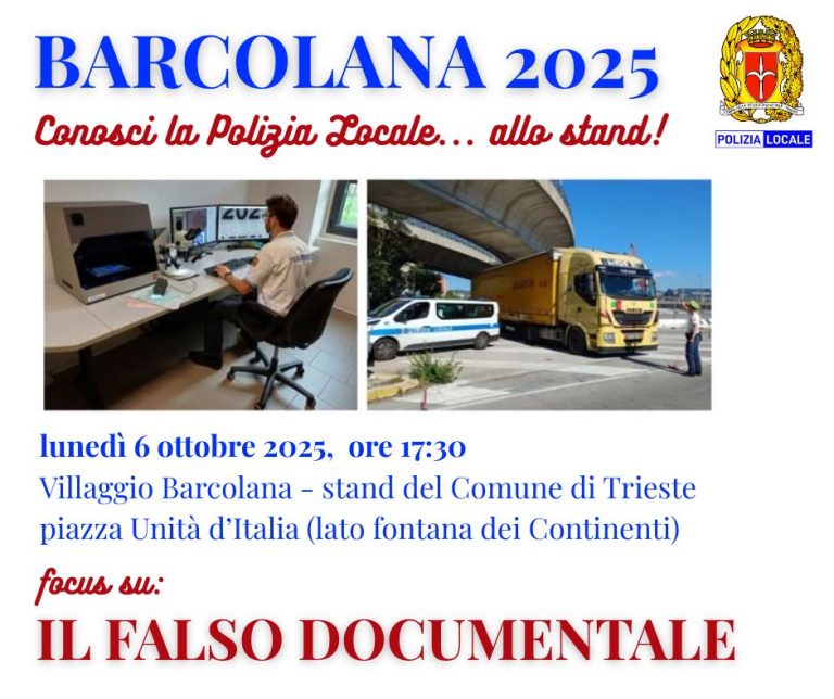 Conosci la Polizia Locale? Questo pomeriggio, lunedì 6 ottobre 2025, alle 17.30, allo stand del Comune di Trieste in piazza Unità d’Italia, parleranno della loro attività i colleghi del NUCLEO FALSO DOCUMENTALE Un’occasione per scoprire alcune delle nostre competenze. VI