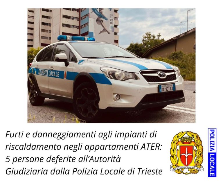 Furti e danneggiamenti agli impianti di riscaldamento negli appartamenti ATER: 5 persone deferite all’Autorità Giudiziaria dalla Polizia Locale di Trieste