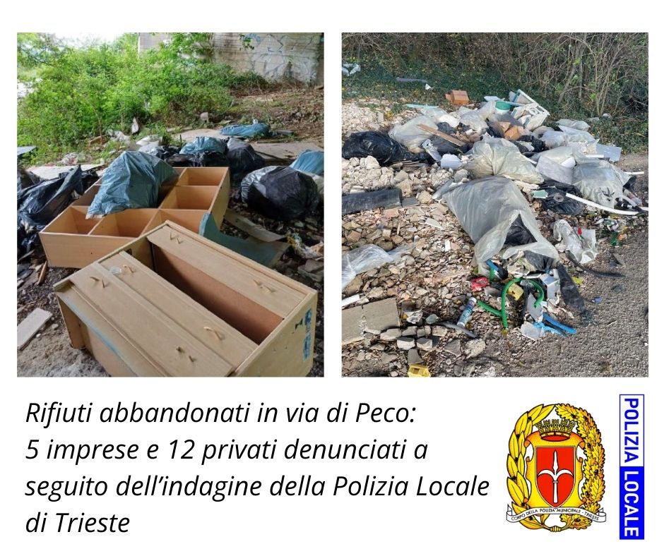 Come previsto per legge, i rifiuti residui che non sono stati tolti dagli altri indagati sono in fase di rimozione e smaltimento ad opera del Comune di Trieste: grazie all’esito positivo delle indagini il Comune potrà rivalersi sugli autori del reato per le spese sostenute; diversamente gli interventi di questo genere, senza un responsabile certo, incidono su tutta la cittadinanza venendo ridistribuiti sulla Tari.
