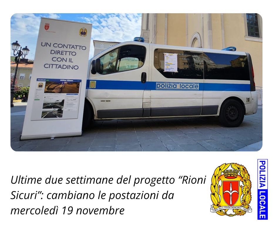 Con l’avvicinarsi delle ultime due settimane del progetto “Rioni Sicuri” della Polizia Locale di Trieste, che verrà sospeso temporaneamente durante i mesi invernali per riprendere in primavera, sono previste delle modifiche alle postazioni.